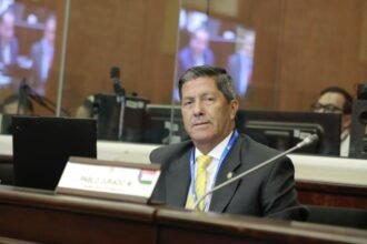 El asambleísta Pablo Aníbal Jurado, representante de Imbabura, junto a sus colegas Cristian Benavides (Carchi) y Juan Gonzaga Salazar (Sucumbíos),…
