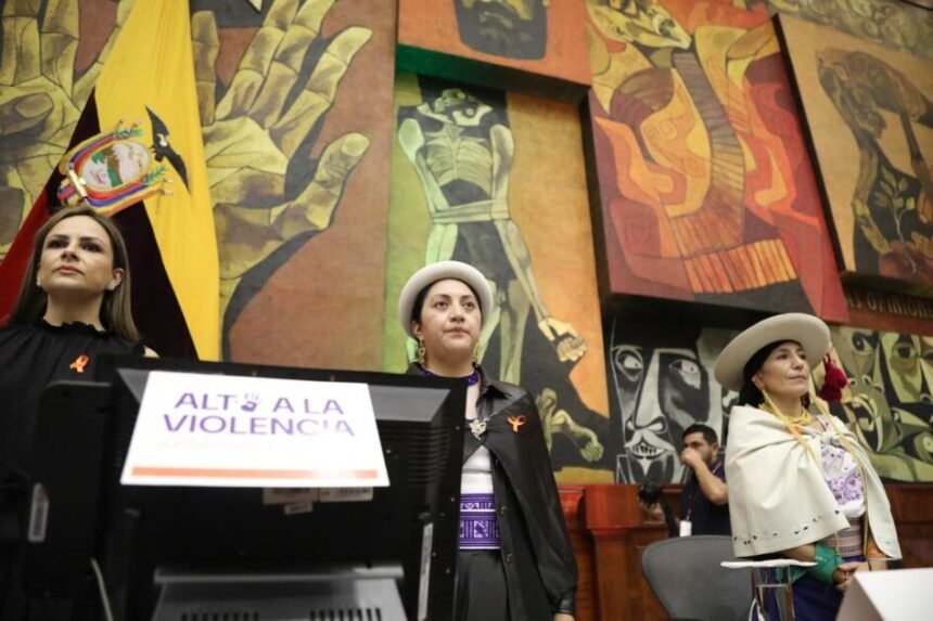 El lunes 26 de noviembre de 2024, en el marco del Día Internacional contra la Violencia de Género, se inauguró en el pleno Nela Martínez de la Asamblea Nacional del Ecuador el Encuentro Nacional de Mujeres “Alto a la violencia: juntas nos cuidamos”. Este evento fue liderado por la presidenta de la Asamblea, Viviana Veloz, con el propósito de reflexionar sobre la problemática de la violencia de género y promover estrategias de prevención y erradicación.