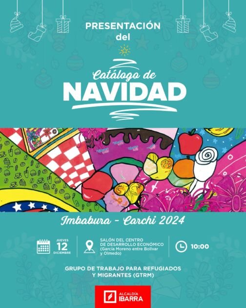 La Alcaldía de Ibarra, a través de la Dirección de Desarrollo Económico, en coordinación con el Grupo de Trabajo para Refugiados y Migrantes (GTRM) en Ecuador, lanzó la segunda edición del Catálogo de Navidad Imbabura – Carchi 2024. Esta iniciativa busca fortalecer el desarrollo económico de personas en situación de vulnerabilidad, promoviendo sus emprendimientos en la temporada navideña.