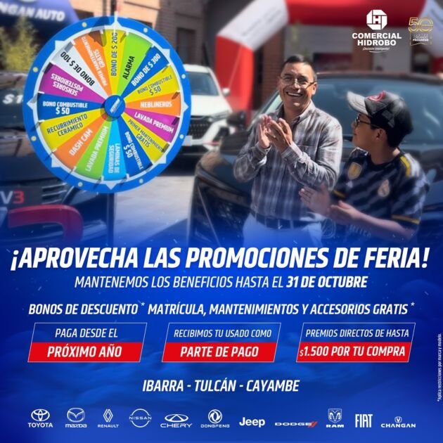 Comercial Hidrobo invita a los interesados a visitar sus puntos de venta en Ibarra, Tulcán y Cayambe para aprovechar estos beneficios de feria antes de que concluya el plazo. Con esta iniciativa, la empresa busca fortalecer aún más su liderazgo en el sector automotriz de la región y apoyar a los clientes en la adquisición de sus vehículos nuevos bajo condiciones ventajosas y exclusivas.