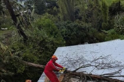 Bomberos de Antonio Ante atienden emergencia por árbol caído sobre una vivienda tras fuertes lluvias