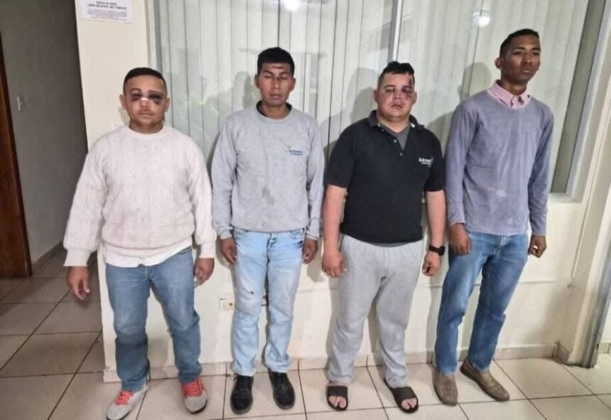 Según el testimonio de los propios afectados, durante su retención fueron agredidos físicamente y sus uniformes quemados. A simple vista se evidencian golpes en diferentes partes del cuerpo. No obstante, señalaron que también recibieron atención en la casa comunal donde permanecieron retenidos, aunque afirmaron desconocer la ubicación exacta del lugar.