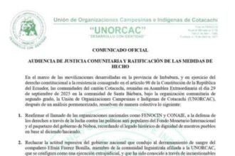 El ministro también señaló que en Cotacachi, cantón de Imbabura, se concentra un grupo de aproximadamente 1 000 personas que han bloqueado la vía principal y se preparan para impedir el paso del convoy. Esta situación se enmarca en el contexto del paro nacional convocado por la Confederación de Nacionalidades Indígenas del Ecuador (Conaie), que este 13 de octubre cumple 22 días de movilizaciones, tras el anuncio del Gobierno sobre la eliminación del subsidio al diésel.