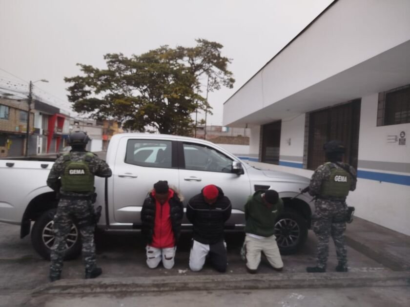 Con esta información y al encontrarse ante un delito flagrante, se procedió a la aprehensión inmediata de los tres ocupantes del vehículo, quienes fueron identificados como: Andrés Felipe S. Q., de nacionalidad colombiana; Cristian Robert R. V., ecuatoriano de 28 años, con antecedentes por investigación y asociación ilícita; y Gary Sebastián Ch. R., de nacionalidad ecuatoriana.