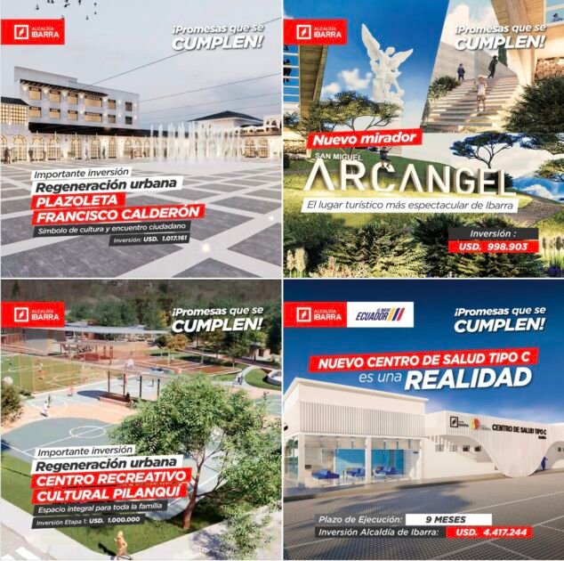 • Construcción del Nuevo Mirador: Ubicado estratégicamente para ofrecer vistas panorámicas de Ibarra, este nuevo espacio turístico contribuirá al impulso del turismo local y al desarrollo económico de las zonas aledañas.
