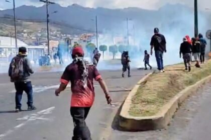 Comuneros se enfrentan a policías y militares en Otavalo: exigen liberación de detenidos y retienen a dos uniformados