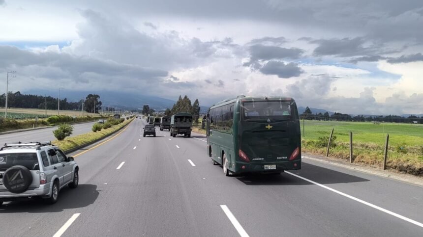 Convoy militar se desplaza hacia Otavalo ante anuncio de marchas indígenas hacia Quito por el 12 de octubre